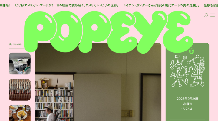 一方、ウェブサイト『POPEYE Web』では、雑誌の最新号情報はもちろん、日々の「気になること」を毎日更新するコンテンツが特徴的です。ポッドキャストや、ライフスタイルに寄り添った記事(例:「初めてバーに行くなら…」)を提供することで、読者の日々の生活に寄り添い、雑誌の世界観を日常の延長線上として体験させてくれるウェブサイトです。雑誌『POPEYE』が提示する憧れの世界を、デジタルを通じてより身近で、パーソナルなものに落とし込んでいると言えるでしょう。